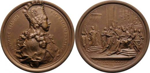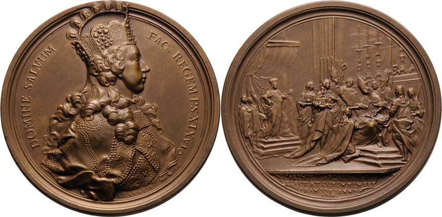 Kraft - medaile na korunovaci ve Frankfurtu 1764/1914 - poprsí zprava, opis / scéna korunovace, 3-řádkový nápis, Sign., znač. HMA, patin. bronz 50 mm, nep.hr.