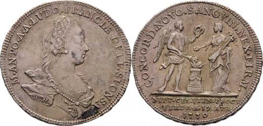 Wiedaman - jeton na svatbu s Ludvíkem XVI. 19.4.1770 - portrét zprava, opis / dvě postavy u oltáře, opis a nápis, Sign., Ag 25mm, 3.989g, M.2007, H.3309, pat.