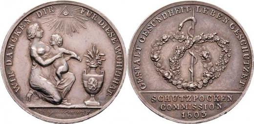 Guillemard - AR medailka císař.očkovací komise 1803 - matka s dítětem, květiny ve váze, opis / Aeskulapova hůl, věnce květin, písmo, 26mm, 5.791g, PG.135, dr.hr