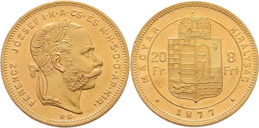 8 Zlatník 1877 KB, 6.439g, nep.hr., nep.rysky, pěkná patina, téměř