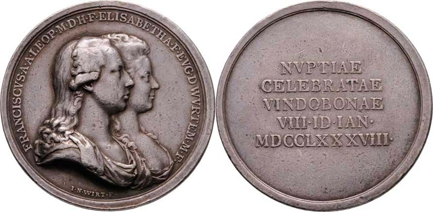 Wirth - AR medaile na zásnuby ve Vídni 8.1.1788 - dvojportrét zprava, opis / 5-řádkový nápis, Sign., 42mm, 26.089g, M.2177, H.3321, m.o., dr.hr., dr.rysky