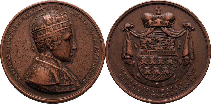 Boehm - AE medaile na holdování v Sedmihradsku 1837 - korunov.poprsí zprava, opis / korunovaný znak, opisy, 47mm, 61.192g, Nov.E.1c, P.4/3, M.2568, rysky, patina