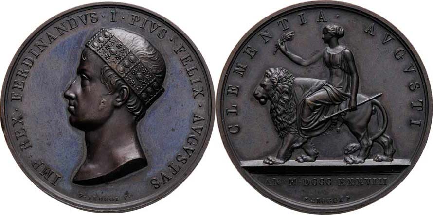 Broggi - AE medaile na korunovaci v Miláně 11.9.1838 - korun. poprsí zprava, opis / 9-řádk. nápis, Sign., 44mm, Nov.G.4b, P.6/8, nep.hr., pat., podl.lístky R!