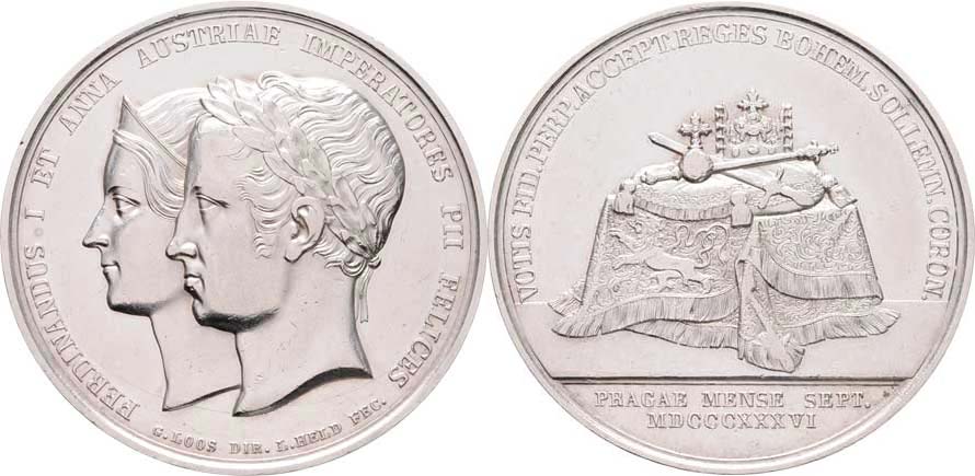 Loos a Held - AR medaile na korunovaci v Praze 1836 - dvojportrét zleva, opis/ korunovační klenoty na stole a písmo, Ag 39mm, 19.291g, ČS.1498, nep.hr., nep.rys.