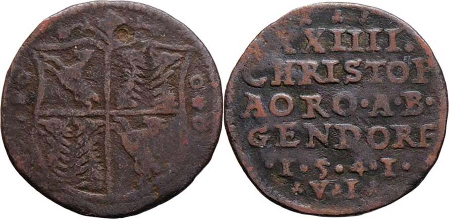 AE jeton (horní známka) 1541 - znak/ 6-řádkový nápis, Don.3360, Neumann.28550, Pž.34, 1.635g, patina RR!