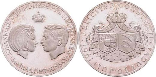 Svatební medaile 30.VII.1967 - portréty pod korunou, opis / korunované rodové znaky na plášti, opis, Sign.AZ, Zn.A (Vídeň), Ag900, 35mm, 14.762g, skvrny