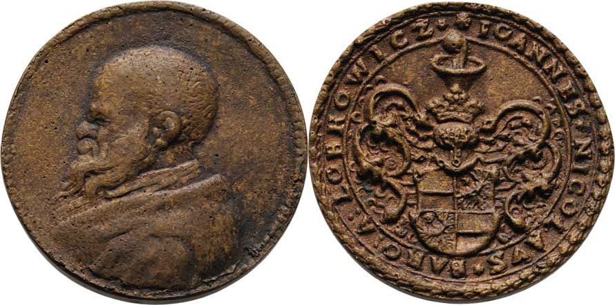 Litá bronzová medaile b.l. (patrně 19.století) - poprsí zleva bez opisu / znak, opis, PL.30, revers jako BPM.238, 36mm, 28.817g, krásný štítek 30.3.1891