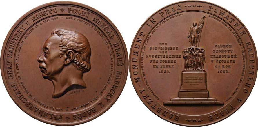 Seidan - AE medaile Jednoty krasoumné v Čechách 1859 - hlava zleva, opisy/ pomník maršála v Praze, písmo, Sign., 80mm, Don.3698, MZČ.150/24, dr.hr., dr.rysky