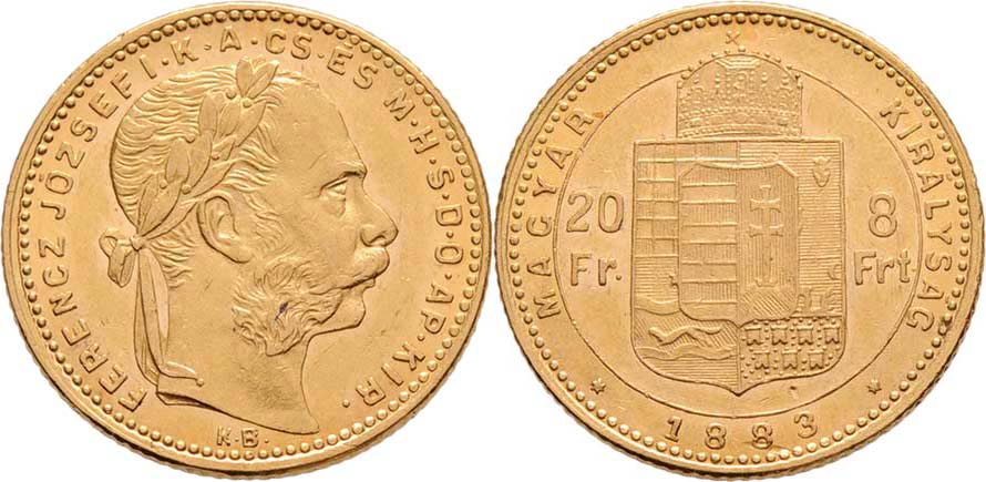 8 Zlatník 1883 KB, 6.437g, nep.hr., nep.rysky, nep.úhoz, pěkná patina