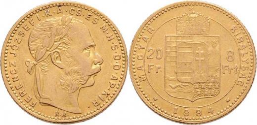 8 Zlatník 1884 KB, 6.419g, nep.hr., nep.rysky, pěkná patina