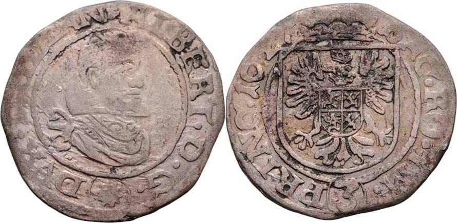 3 Krejcar 1627, Jičín-Reick, Nech.27, Meyer.80, 1.725g, krajový střížek, nedor., nep.dvojráz, patina