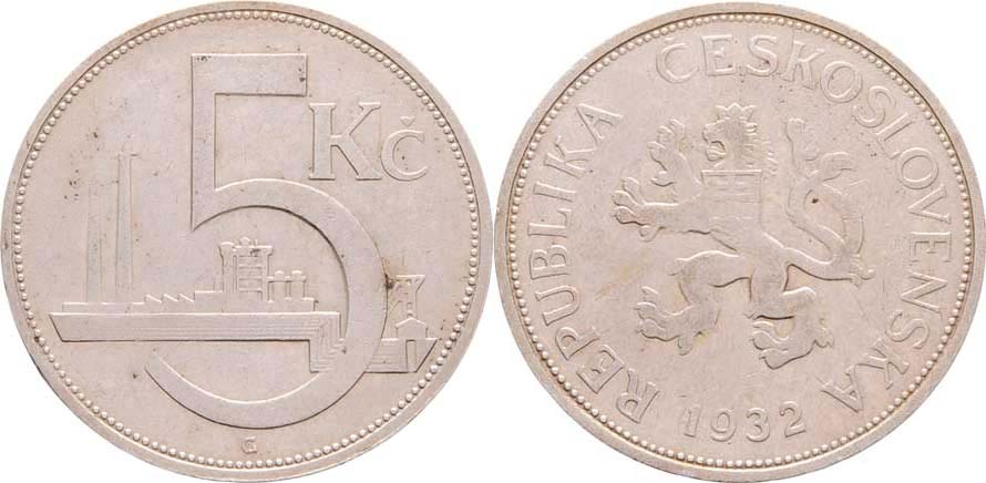 5 Koruna 1932, 6.915g, nep.hr., vlas.rysky, pat. R!