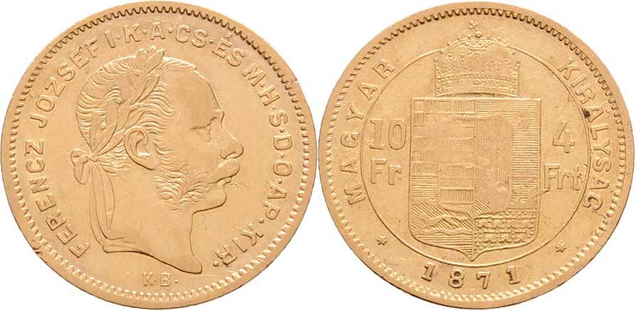 4 Zlatník 1871 KB, 3.188g, dr.hr., dr.rysky, pěkná patina