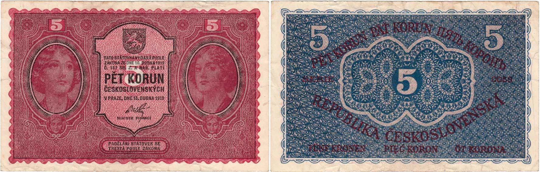5 Koruna 1919, série 0058, BHK.8 "neperf."