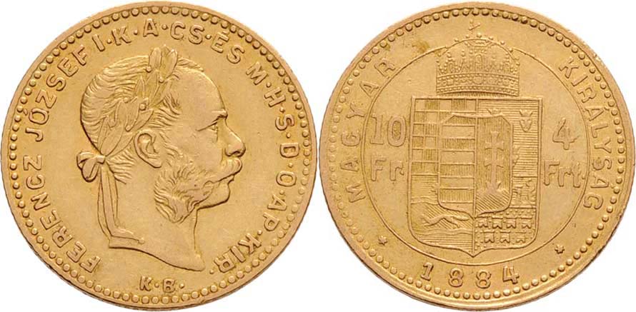 4 Zlatník 1884 KB (pouze 54.000 ks), 3.192g, nep.hr., nep.rysky, pěkná patina R!