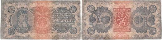 5 Koruna 1921, série 3, dobové falzum, jako BHK.18
