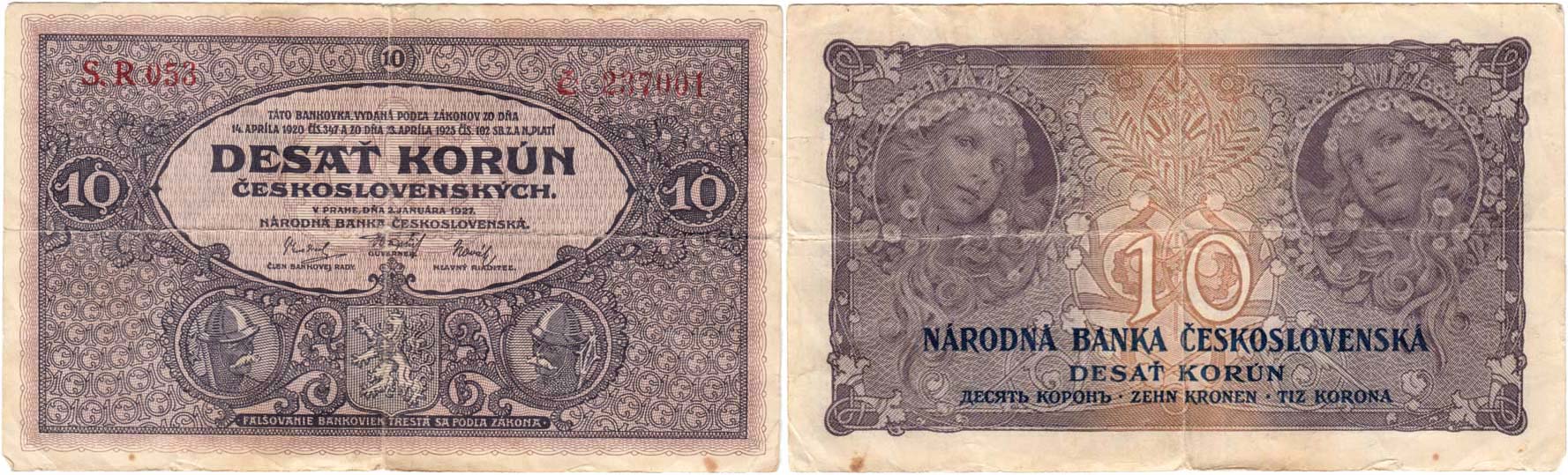 10 Koruna 1927, série R053, BHK.22b "neperf."