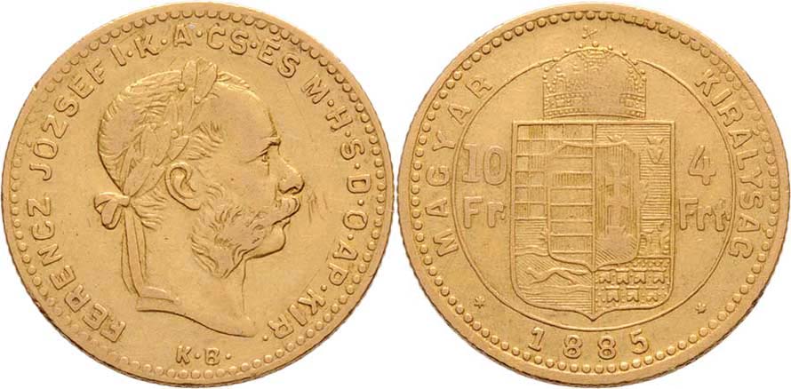4 Zlatník 1885 KB (pouze 64.000 ks), 3.168g, nep.hr., nep.rysky, pěkná patina R!