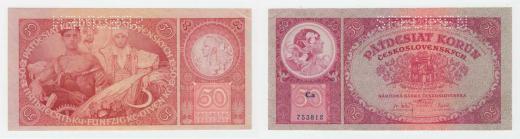 50 Koruna 1929, série Ca, BHK.24b "SPECIMEN"