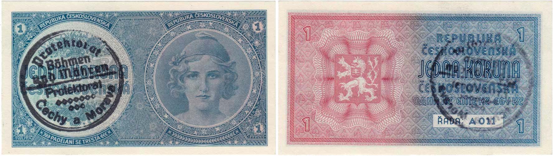 1 Koruna b.l.-ruční r., sér.A011, BHK.28a "neperf."
