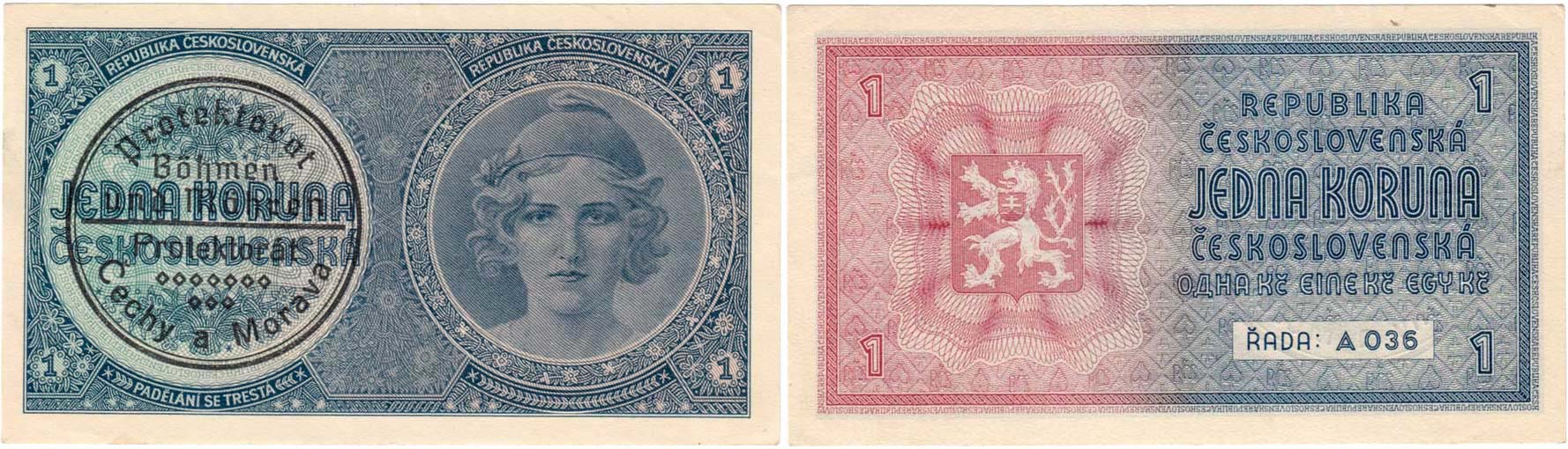 1 Koruna b.l.-stroj.r., sér.A036, BHK.28b "neperf."