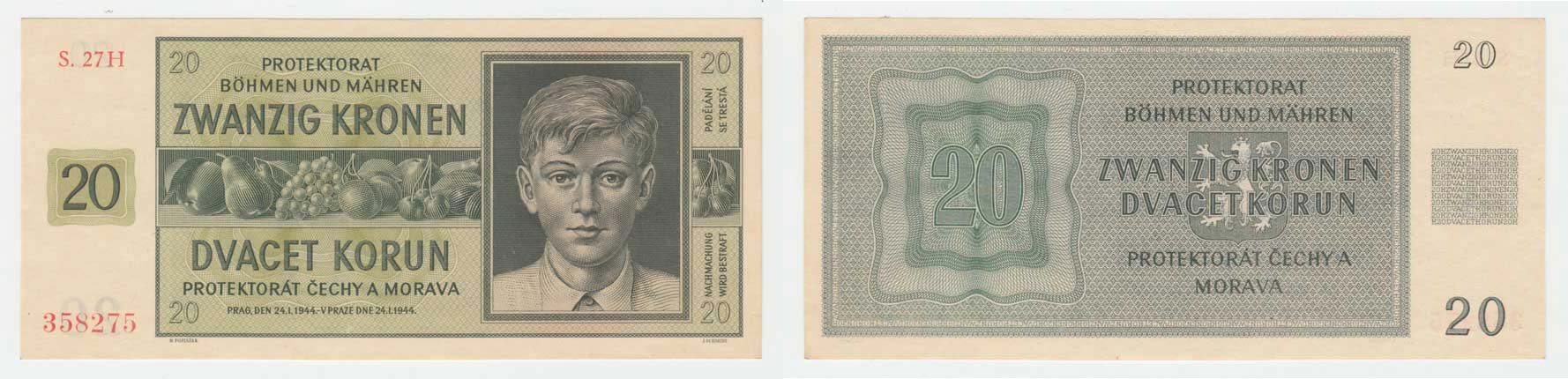 20 Koruna 1944 - série 27H, BHK.40c "neperf."