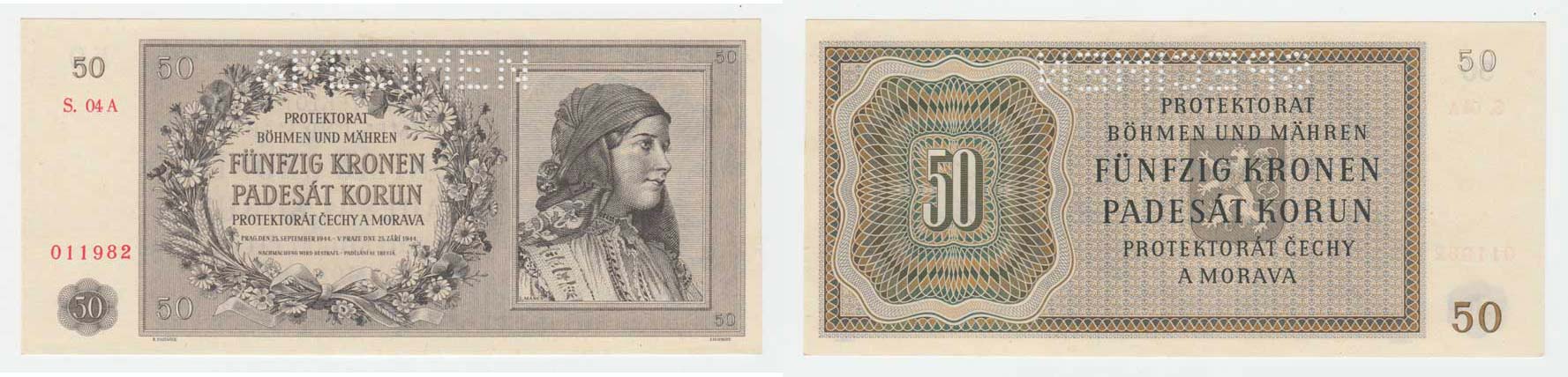 50 Koruna 1944 - série 04A, BHK.42 "SPECIMEN"