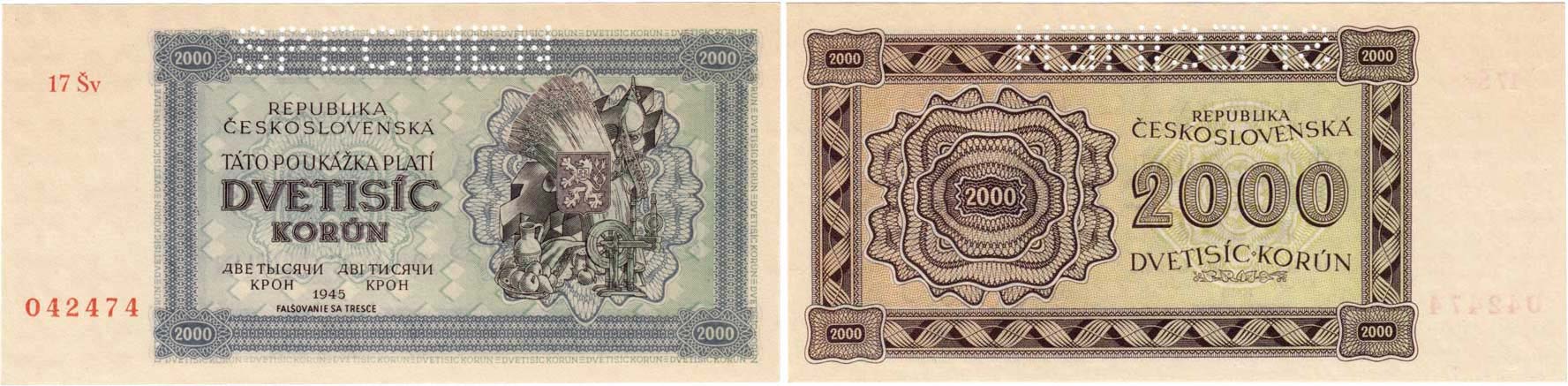 2000 Koruna 1945, série 14Op, BHK.69bC "SPECIMEN"