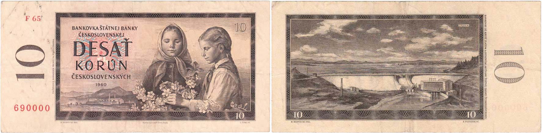 10 Koruna 1960, série F65, BHK.94a2 "neperf."