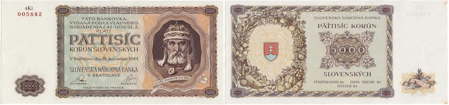 5000 Koruna 1944, série 4Kl, BHK.N5 "SPECIMEN"