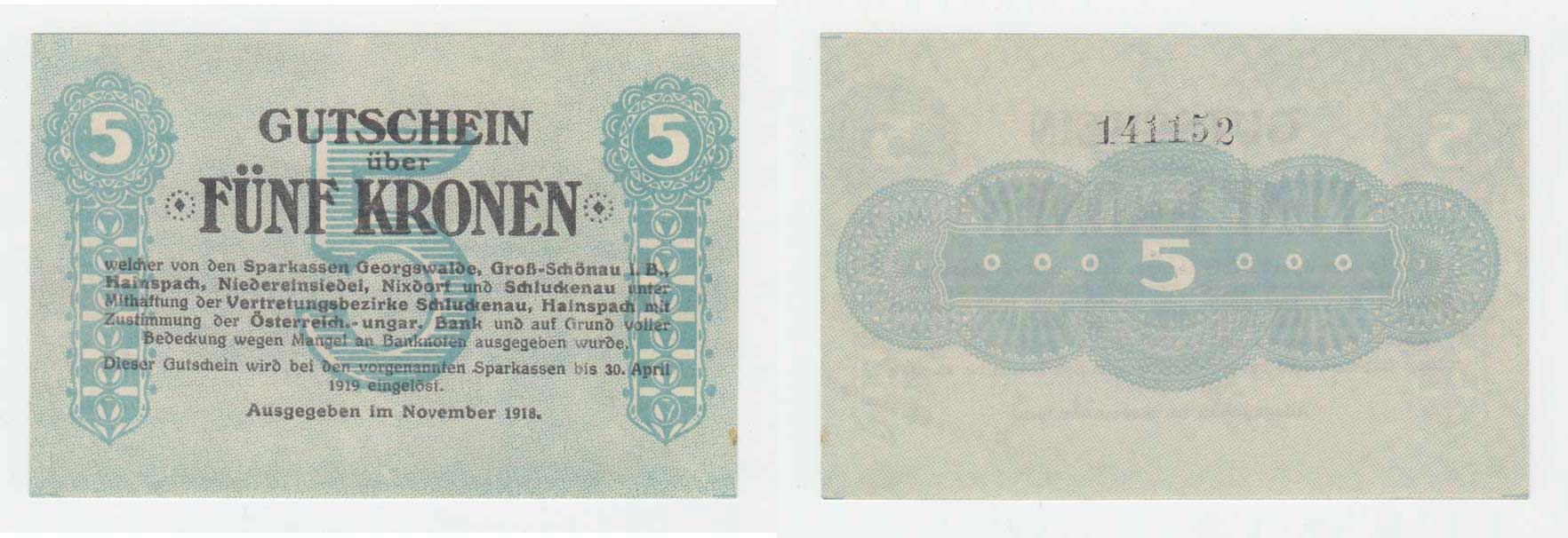 Georgswalde (Jiříkov), 5 Koruna 1918, D-H.51.1.3a, H-H.53.1.3a