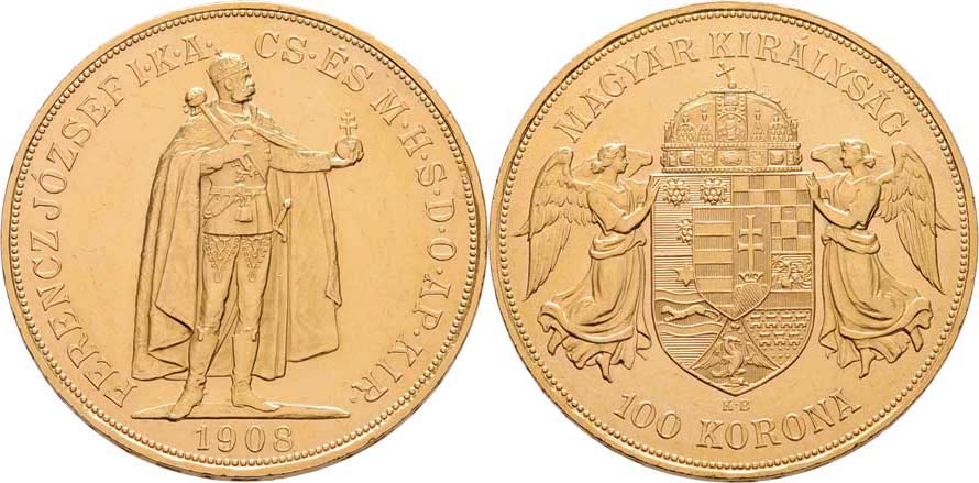 100 Koruna 1908 KB - původní ražba (pouze 4.038 ks), 33.854g, nep.hr., nep.rysky, téměř RR!