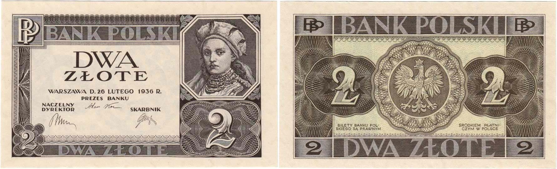 2 Zlotý 1936 - bez podtisku, série a čísla, Mil.75c, podobný jako jako Pick.76r