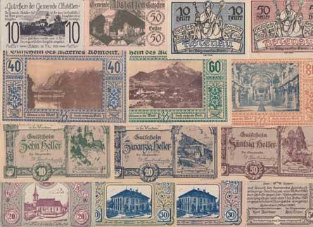 Sbírka rakouských nouzovek - města od písmene A, celkem 209 ks (některé kusy vícekrát), převážně zach.