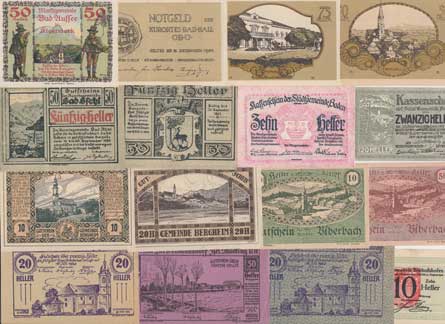 Sbírka rakouských nouzovek - města od písmene B, celkem 160 ks (některé kusy vícekrát), převážně zach.