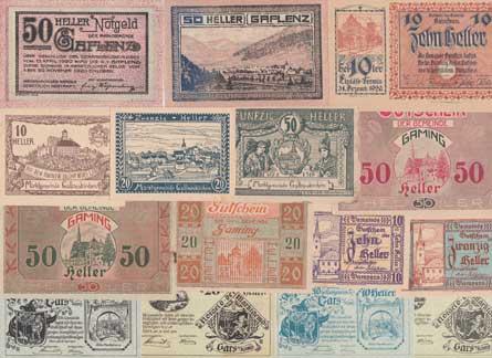 Sbírka rakouských nouzovek - města od písmene G, celkem 283 ks (některé kusy vícekrát), převážně zach.