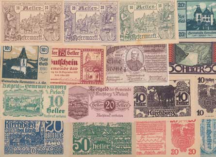 Sbírka rakouských nouzovek - města od písmene K, celkem 213 ks (některé kusy vícekrát), převážně zach.
