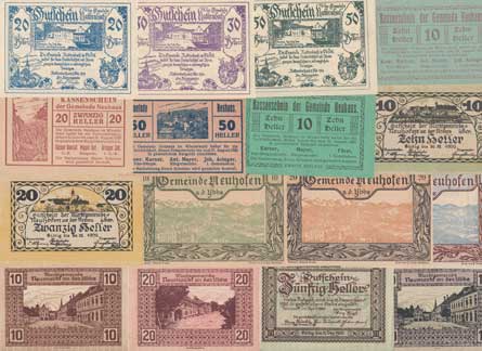 Sbírka rakouských nouzovek - města od písmene N, celkem 139 ks (některé kusy vícekrát), převážně zach.