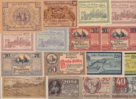 Sbírka rakouských nouzovek - města od písmene R, celkem 132 ks (některé kusy vícekrát), převážně zach.