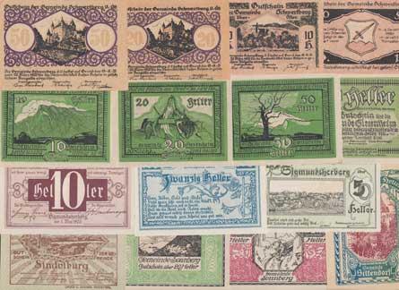 Sbírka rakouských nouzovek - města od písmene S - 3. část, celkem 153 ks (některé kusy vícekrát), převážně