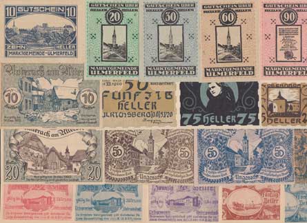 Sbírka rakouských nouzovek - města od písmene U a V, celkem 107 ks (některé kusy vícekrát), převážně zach.