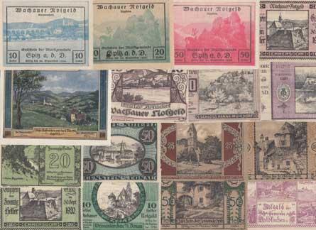 Sbírka rakouských nouzovek - města od písmene W - 1. část, celkem 230 ks (některé kusy vícekrát), převážně