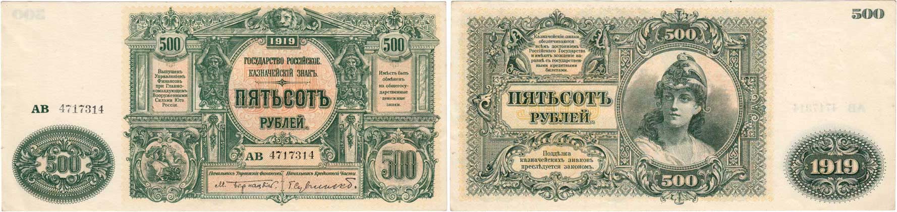 500 Rublů 1919, Pick.S440b - tiskárna "W&S" ve Velké Británii