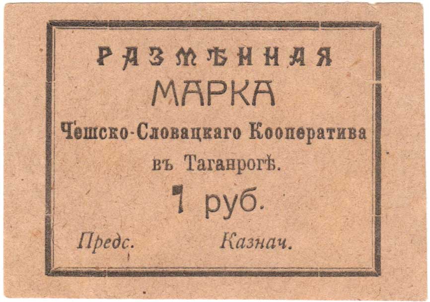 1 Rubl b.l.(cca 1920) - Česko-slovenské družstvo v Taganrogu, formulář 72x50 mm RR!