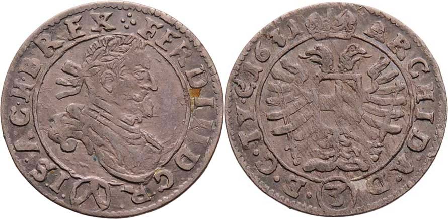 3 Krejcar 1631, Vídeň-Fellner, M-A.129, 1.635g, nep.nedor., mírně just., pěkná patina