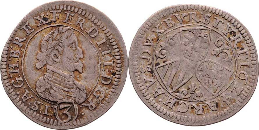 3 Krejcar 1624, Štýrský Hradec, M-A.118, 1.838g, nep.exc., pěkná patina