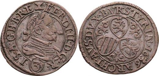 3 Krejcar 1636, Štýrský Hradec, M-A.133, 1.957g, dr.vada razidla, pěkná patina