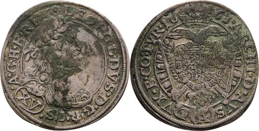 XV Krejcar 1663, Vídeň-Cetto, Höll.63.4.17, Nech.1907aa, M-A.162, 5.862g, nep.exc., nep.nedor., skvrny, patina