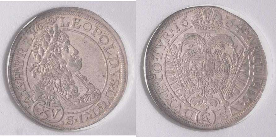 XV Krejcar 1664, Vídeň-Cetto, Höll.64.2.10, Nech.1909b, M-A.163, mince v etui "S.V.Collection", uvedena zachovalost XF, pěkná patina