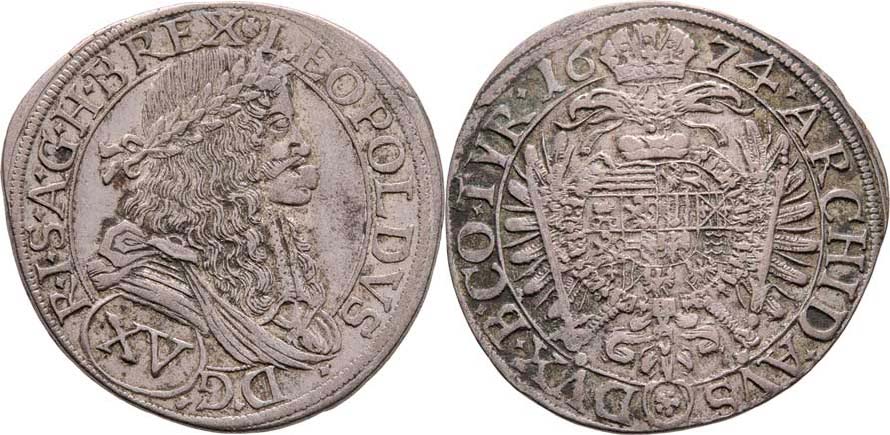 XV Krejcar 1674, Vídeň-Faber, Höll.74.1.11, M-A.173, Nech.1912, 6.298g, nep.exc., pěkná patina